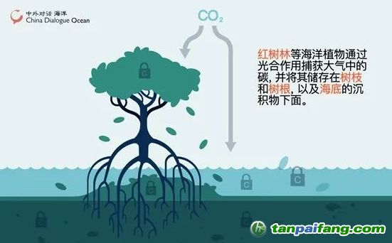 圖說(shuō):紅樹(shù)林固碳原理 內(nèi).容.來(lái).自:中`國(guó)*碳-排*放*交*易^網(wǎng) t a npai fa ng.com