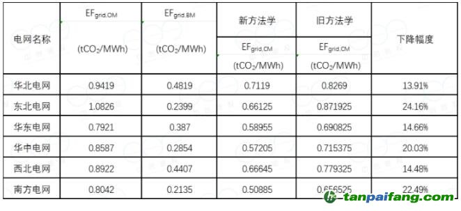 表1 | 新舊方法學(xué)下的區(qū)域電網(wǎng)組合邊際排放因子