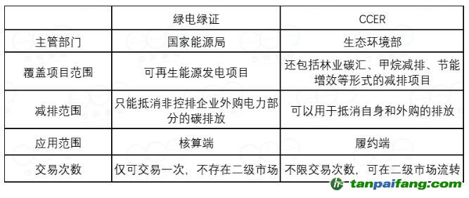表2 | CCER與綠電綠證的比較