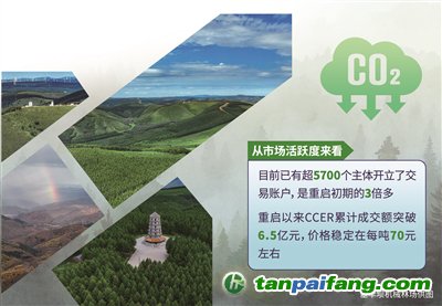 從市場活躍度來看,目前已有超5700個主體開立了交易賬戶,涵蓋項目方、企業(yè)、投資機構(gòu)等,是重啟初期的3倍多;重啟以來CCER累計成交額突破6.5億元,