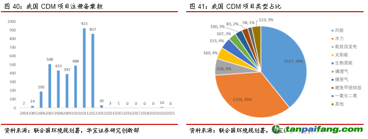 2005年6月26日,聯(lián)合國(guó)CDN管理委員會(huì)注冊(cè)了我國(guó)第一個(gè)風(fēng)力發(fā)電項(xiàng)目——內(nèi)蒙古輝騰錫勒風(fēng)電場(chǎng)項(xiàng)目,標(biāo)志著我國(guó)CDM風(fēng)力發(fā)電項(xiàng)目開(kāi)發(fā)的開(kāi)端。截至2021年4月1日,我國(guó)CDM已注冊(cè)備案項(xiàng)目數(shù)量達(dá)3861個(gè),從注冊(cè)時(shí)間來(lái)看,2006-2012年,我國(guó)CDM項(xiàng)目處于高速發(fā)展期,7年注冊(cè)備案項(xiàng)目3791個(gè),占比達(dá)98%,2013年后CDM注冊(cè)備案項(xiàng)目速度放緩,其主要原因在于歐盟碳排放體系對(duì)CDM項(xiàng)目抵消進(jìn)行限制,致使占比最高的中國(guó)地區(qū)CDM項(xiàng)目急劇減少。 禸嫆@唻洎:狆國(guó)湠棑倣茭昜蛧 τāńpāīfāńɡ.cōm