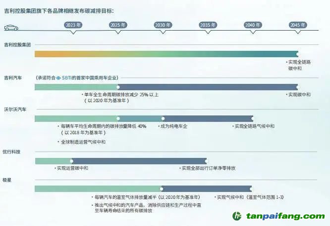 減碳問題不僅關(guān)乎到國家3060雙碳戰(zhàn)略目標(biāo)的實(shí)現(xiàn),而且還關(guān)乎車企可持續(xù)發(fā)展的路徑與方法。在吉利控股集團(tuán)發(fā)布的《2021年可持續(xù)發(fā)展報(bào)告》,吉利控股集團(tuán)首次宣布將在2045年實(shí)現(xiàn)全鏈路碳中和,并為這個(gè)目標(biāo)提出了一系列的方法和舉措。 本`文@內(nèi)-容-來-自;中_國_碳排0放_(tái)交-易=網(wǎng) t an pa ifa ng . c om