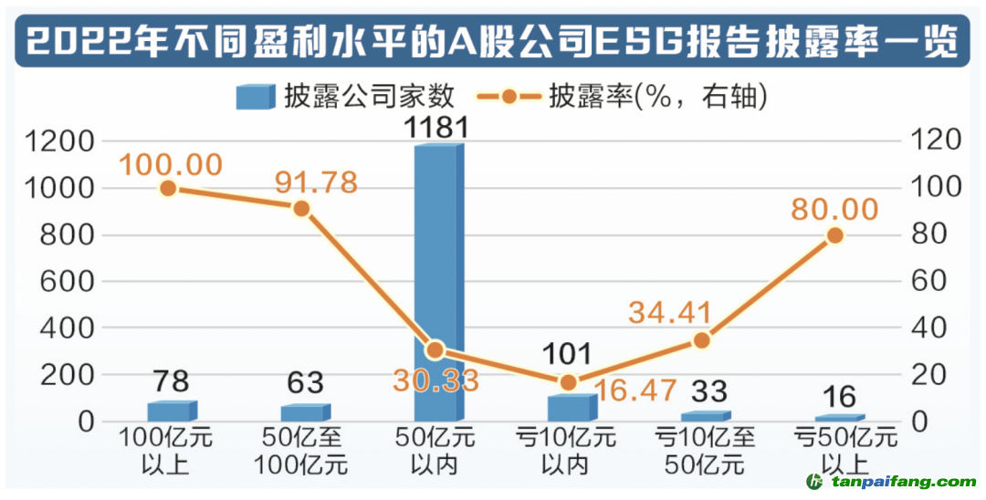 第四,頭部企業(yè)擔(dān)當(dāng)ESG信息披露領(lǐng)頭雁。數(shù)據(jù)顯示,截至2022年12月末,市值超千億元的128家上市公司2021年ESG報告披露率超過90%,其中市值超過5000億元的16家公司全部發(fā)布了獨立的2021年ESG報告。市值低于百億的公司ESG披露率低于50%,50億元以下的上市公司披露率不到20%。 禸嫆@唻洎:狆國湠棑倣茭昜蛧 τāńpāīfāńɡ.cōm