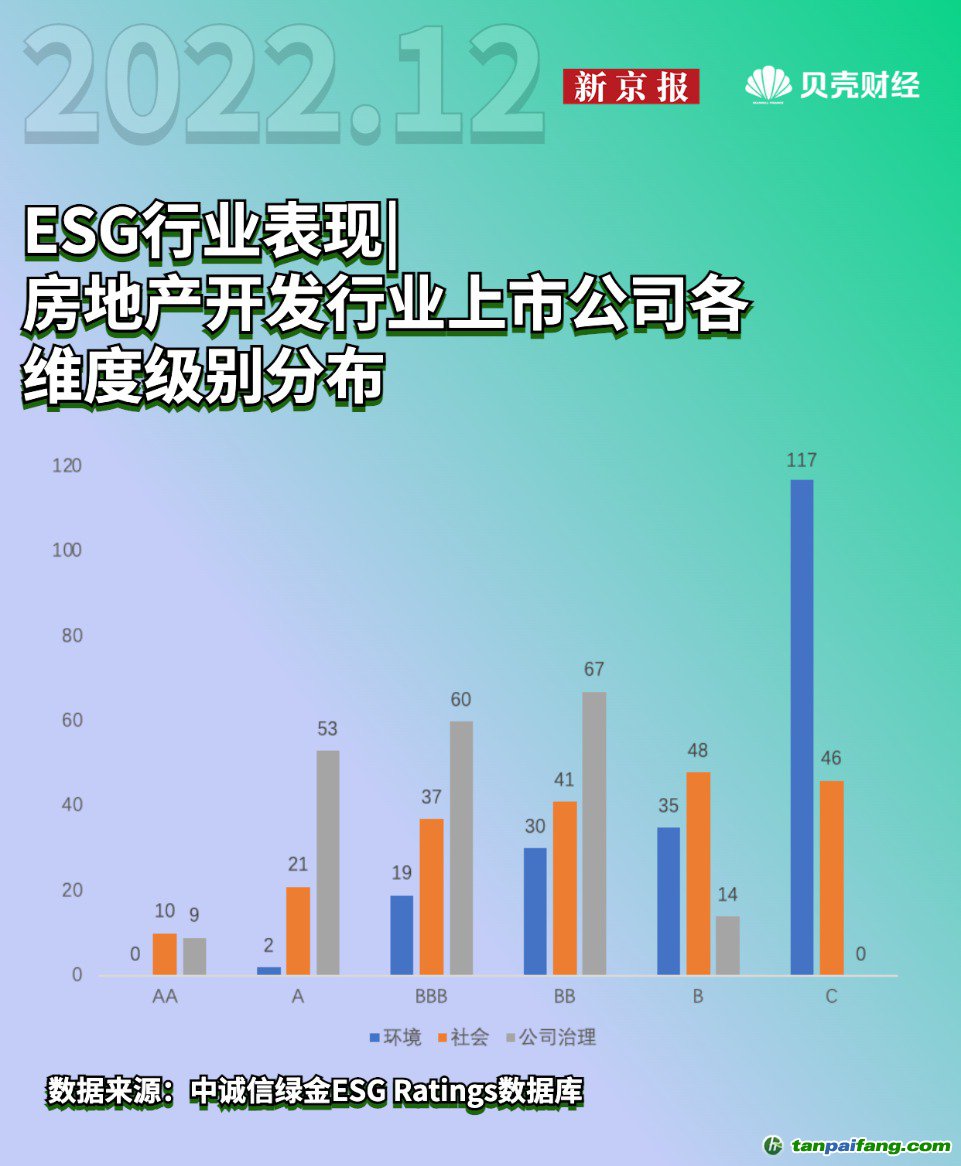 3. 房地產開發(fā)行業(yè)上市公司ESG 三個維度評級表現 本`文@內-容-來-自;中_國_碳排0放_交-易=網 t an pa ifa ng . c om