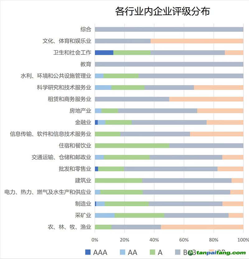下圖顯示了各行業(yè)企業(yè)ESG評級結(jié)果的分布: