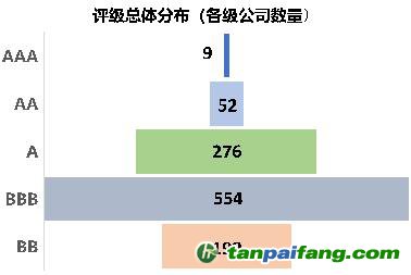 評級結(jié)果顯示:9家企業(yè)獲“AAA”最高評級,52家企業(yè)獲“AA”評級,276家企業(yè)獲“A”評級;超半數(shù)企業(yè)獲“BBB”評級,199家企業(yè)僅獲“BB”評級;評級較低的企業(yè)占比較大。 內(nèi)/容/來/自:中-國-碳-排-放*交…易-網(wǎng)-tan pai fang . com