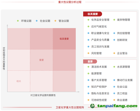 此外,公司首次繪制“重大性議題矩陣”,清晰地展示了21個議題的重要性級別,包含應對氣候變化、員工培訓與發(fā)展、創(chuàng)新發(fā)展等10個極其重要議題,能源管理、員工權益等11個重要議題。 本`文-內.容.來.自:中`國^碳`排*放*交^易^網 ta np ai fan g.com