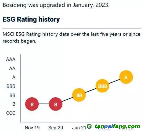 作為負責任的羽絨服專家波司登,它在ESG 實踐上走在行業(yè)領先水平。2023年2月,摩根士丹利資本國際公司(MSCI)將波司登的ESG評級從“BBB“級上調(diào)至“A”,這在中國紡織服裝行業(yè)處于領先水平。波司登在該評級上持續(xù)上升。 本文@內(nèi)/容/來/自:中-國-碳^排-放-交易&*網(wǎng)-tan pai fang . com