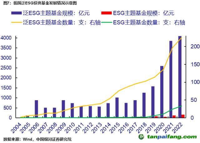 此外,近年來(lái)泛ESG公募基金發(fā)展很快但質(zhì)量欠佳。最早的泛ESG公募基金推出至2022年6月30日,我國(guó)ESG投資基金板塊共存續(xù)261只ESG公募基金,基金規(guī)模合計(jì)超過(guò)3,600億元,其中還有很多打著綠色的旗號(hào),實(shí)際上與綠色關(guān)系不大的項(xiàng)目。這主要是由于缺乏統(tǒng)一規(guī)范,對(duì)應(yīng)的評(píng)價(jià)體系和法規(guī)體系的發(fā)展相對(duì)滯后造成的,未來(lái)需要法律方面的完善和支持。