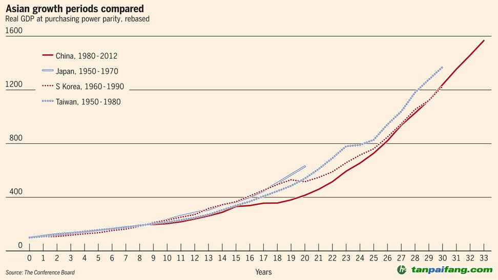 中國改革開放以來的“經(jīng)濟奇跡”,在亞洲有至少三個先例:二戰(zhàn)后的日本、韓國和中國臺灣都有20-30年的經(jīng)濟高速增長。