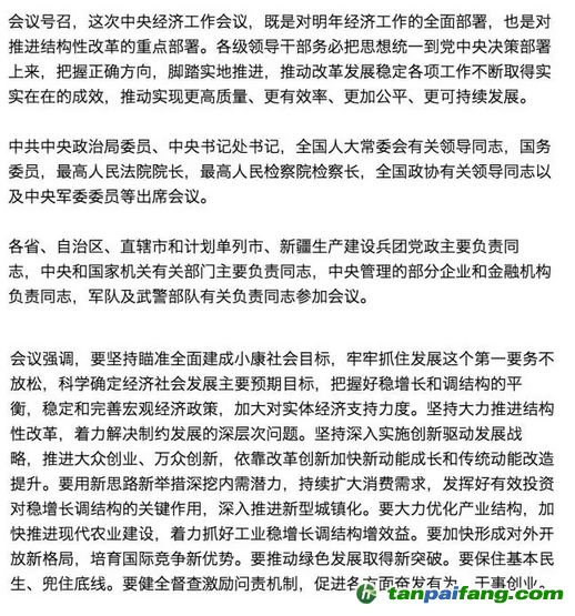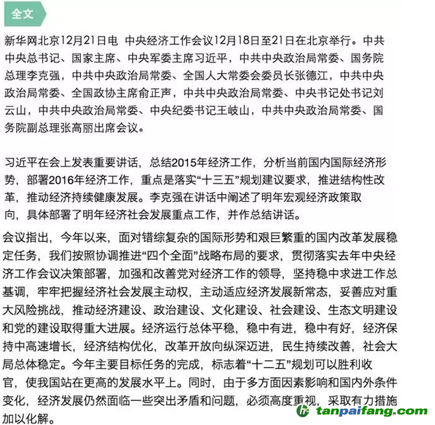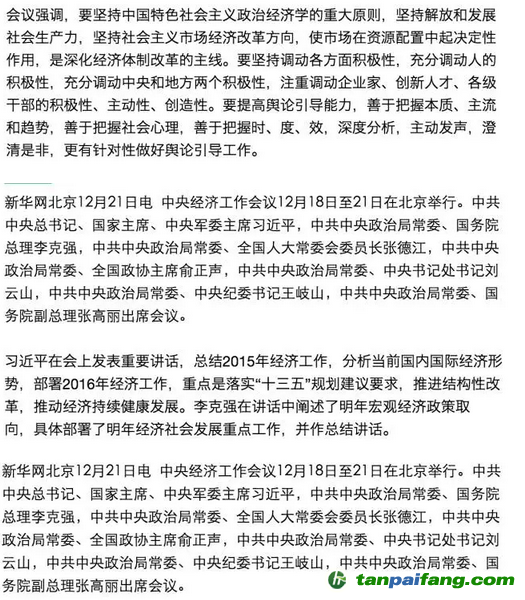 12月18日-21日,中央經(jīng)濟會議在京召開,在這樣一個“十二五”正收官,“十三五”即將開局的時刻,此次會議的內(nèi)容也格外值得關注。能豆君在這里為大家簡單標畫了會議重點,并收集了部分能豆粉的觀點,也希望能在文末評論中看到大家的想法。