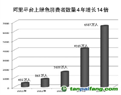 通過對阿里中國零售平臺上的消費(fèi)者購物行為、商品特征等進(jìn)行分析發(fā)現(xiàn),符合綠色消費(fèi)者特征的在線人群達(dá)到6500萬人,占淘寶活躍用戶的16%,近4年增長了14倍。