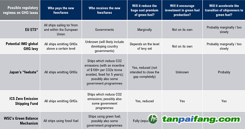 所有提案的目標(biāo)都是通過平衡這些燃料的成本來為航運(yùn)公司使用低GHG燃料提供財(cái)務(wù)激勵。
