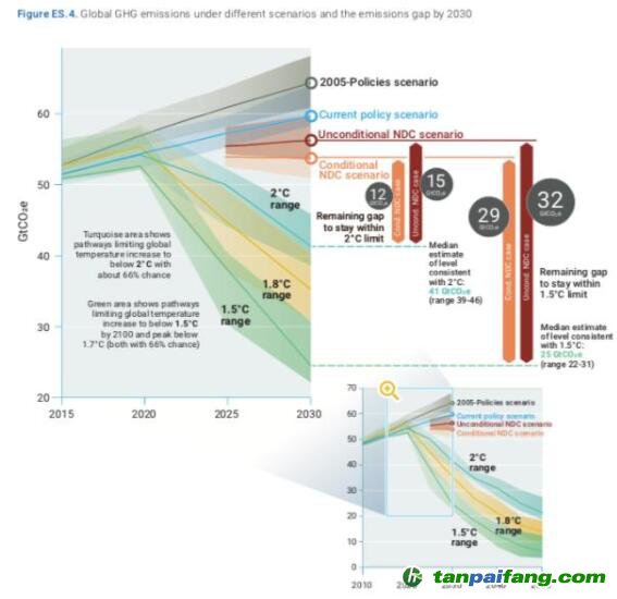 碳排放差距報告》(下稱“報告”)中警告,即使考慮到各國已提交的氣候承諾,到本世紀(jì)末全球氣溫上升幅度還是會達(dá)到3.2攝氏度,而要實現(xiàn)1.5度溫控目標(biāo),在2020~2030年之間,全球