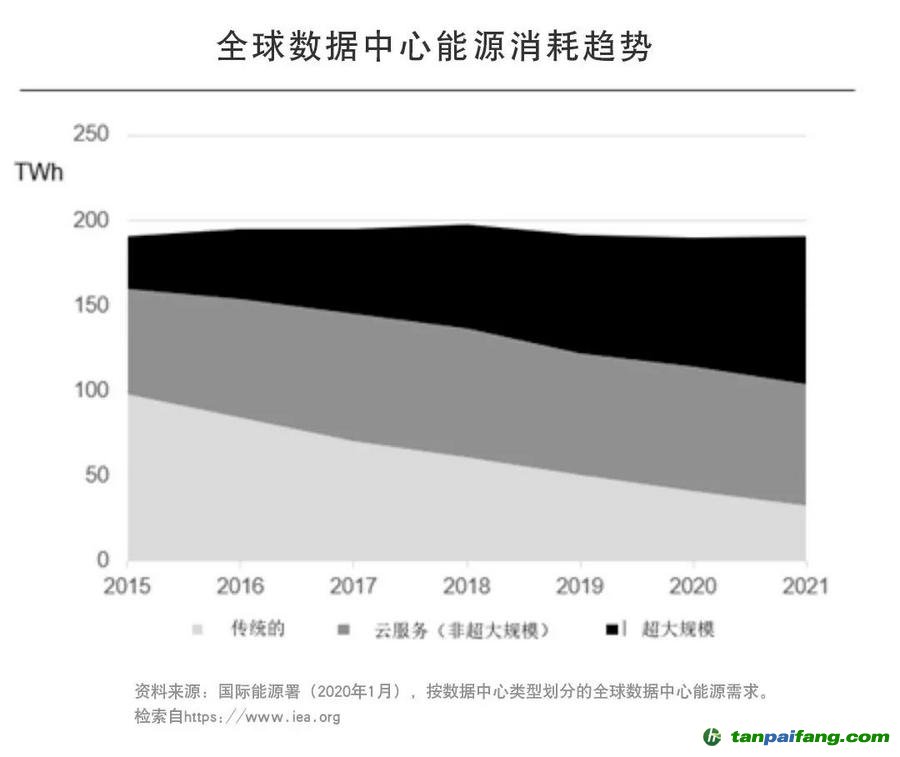 目前,全球的數(shù)據(jù)中心每年消耗約200TWh的電能,約占全球用電量的1%,但近年來,數(shù)據(jù)中心行業(yè)在提高能源效率方面取得重大進(jìn)展,數(shù)據(jù)中心的能耗正趨于平穩(wěn),在滿足客戶大幅增長的服務(wù)需求的同時,實現(xiàn)穩(wěn)定的能源消耗。 本文@內(nèi)/容/來/自:中-國-碳^排-放-交易&*網(wǎng)-tan pai fang . com