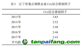從前文可知,雖然遼寧省重點(diǎn)鋼鐵企業(yè)噸鋼能耗和碳排放都呈下降趨勢(shì),但碳排放強(qiáng)度下降幅度更大,這也是鋼鐵企業(yè)綜合排放因子下降的原因,可以看出2013—2017年遼寧省節(jié)能減排工作取得了顯著成效。(表3) 本+文+內(nèi).容.來(lái).自:中`國(guó)`碳`排*放*交*易^網(wǎng) t a np ai fan g.com