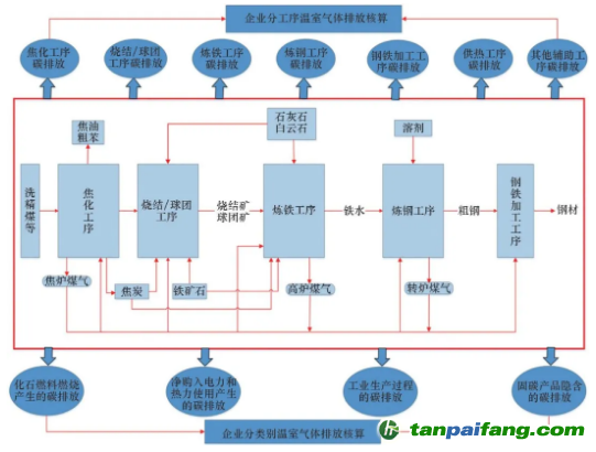 圖1 鋼鐵行業(yè) CO2核算邊界示意 本+文`內(nèi)/容/來(lái)/自:中-國(guó)-碳-排-放-網(wǎng)-tan pai fang . com