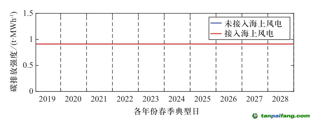 Fig.12 Carbon emission intensity from 2019 to 2028 in spring at Haimen 本`文@內(nèi)-容-來-自;中_國_碳排0放_交-易=網(wǎng) t an pa ifa ng . c om