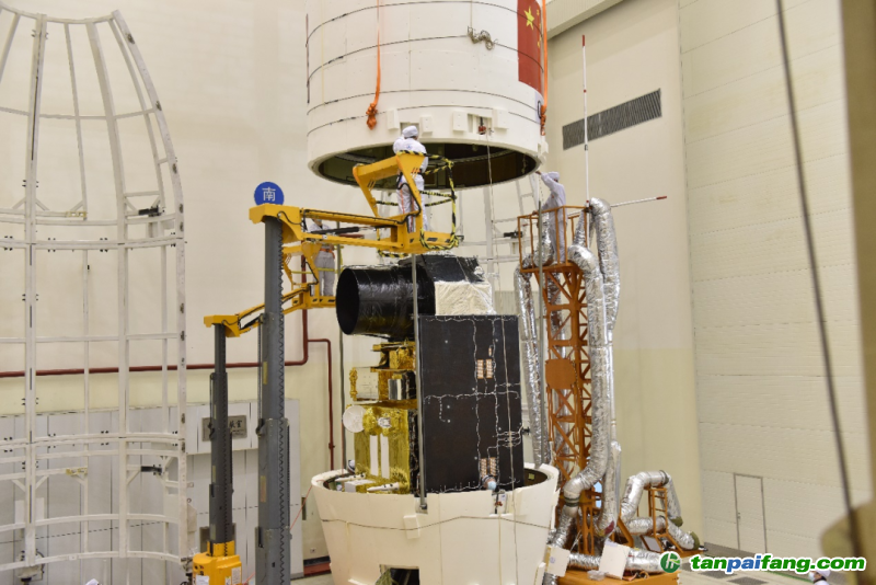 操作人員為大氣環(huán)境監(jiān)測(cè)衛(wèi)星扣整流罩