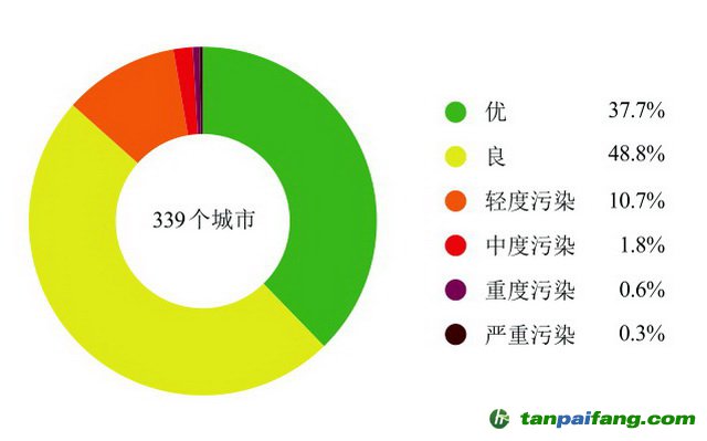 2022年339個(gè)城市環(huán)境空氣質(zhì)量各級(jí)別天數(shù)比例。資料來(lái)源:2022中國(guó)生態(tài)環(huán)境狀況公報(bào) 本`文@內(nèi)-容-來(lái)-自;中^國(guó)_碳0排0放^交-易=網(wǎng) ta n pa i fa ng . co m