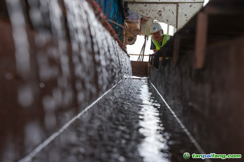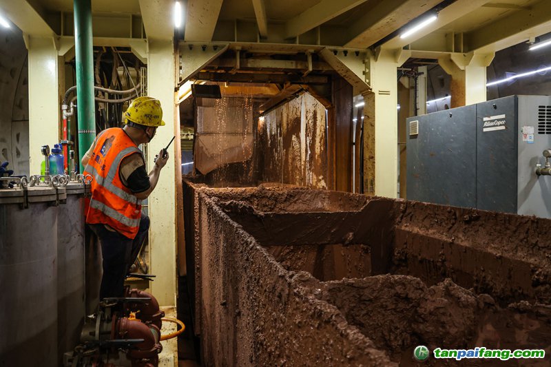 7月18日,施工人員在盾構機尾指揮泥水渣土運輸車接收盾構機輸出的盾構棄渣。 本/文-內(nèi)/容/來/自:中-國-碳-排-放-網(wǎng)-tan pai fang . com