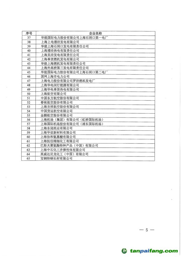 上海市納入國家2018年度碳排放報告與核查及排放監(jiān)測計劃制定工作的企業(yè)名單