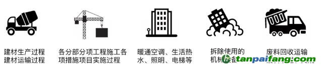 · 建筑拆除后的廢料回收處理階段的碳排放:包括廢料回收運(yùn)輸產(chǎn)生的碳排放和廢料填埋、焚燒產(chǎn)生的碳排放。
