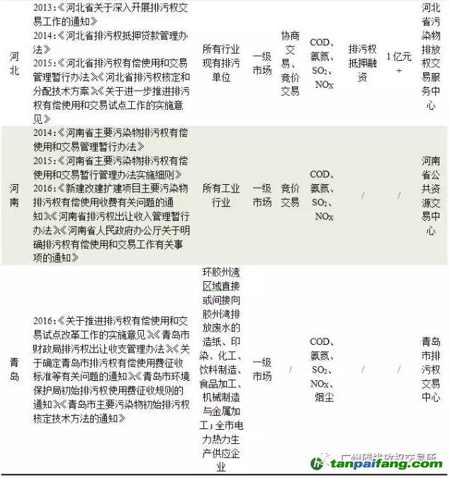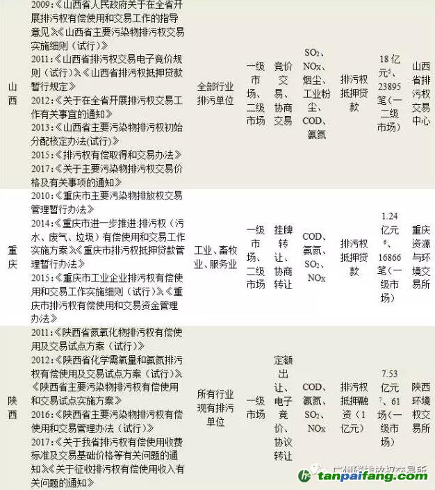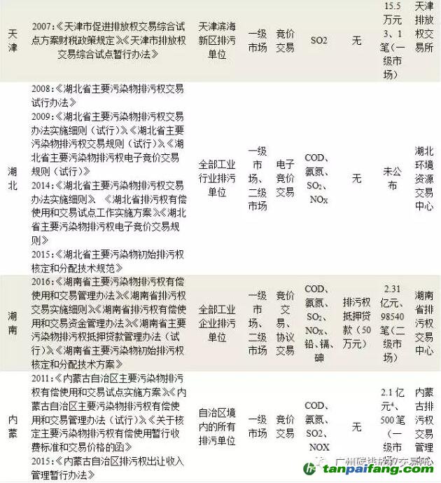 按照2014年國務(wù)院辦公廳發(fā)布的《關(guān)于進(jìn)一步推進(jìn)排污權(quán)有償使用和交易試點工作的指導(dǎo)意見》(以下簡稱“指導(dǎo)意見)”提出的到2017年試點地區(qū)排污權(quán)有償使用和交易制度基本建立、試點工作基本完成的要求,11個試點地區(qū)大多已經(jīng)全部基本建立了排污權(quán)有償使用和交易的基本制度,但從排污權(quán)交易市場運行效果來看,各試點之間情況參差不齊。 內(nèi).容.來.自:中`國`碳#排*放*交*易^網(wǎng) t a np ai f an g.com