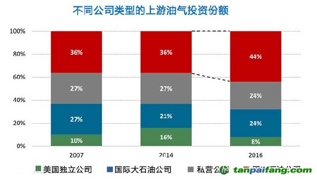 全球上游投資中,國家石油公司的投資份額創(chuàng)下新高。中東和俄羅斯的上游投資仍保持穩(wěn)健,對(duì)北美頁巖和全球海上開采的投資受挫最為嚴(yán)重。 本`文內(nèi).容.來.自:中`國`碳`排*放*交*易^網(wǎng) t a npai fan g.com