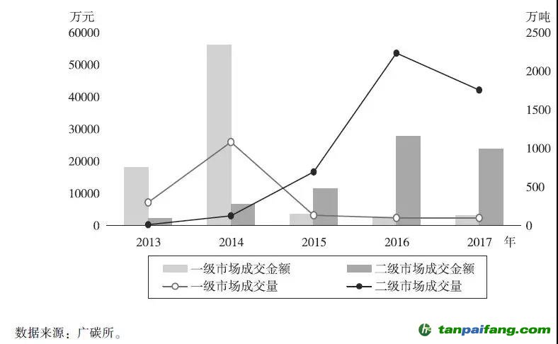 2014年廣碳所開展CCER交易業(yè)務(wù);2015年3月9日,廣東完成國內(nèi)首單CCER線上交易20萬噸。2016年,廣東CCER成交量達到1909萬噸,同比增長1788.14%;2017年CCER成交量為784萬噸。截至2017年底,廣碳所CCER累計成交量達2794萬噸。