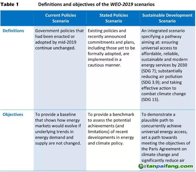國際能源署(IEA)日前發(fā)布一年一度的《世界能源展望報告》,對于各類能源發(fā)電的前景做了三種情景分析:1)目前政策延續(xù)(current policies scenario,簡稱CPS);2)實施已經(jīng)承諾的政策(stated policy scenario,簡稱SPS,即實現(xiàn)各國在巴黎協(xié)議下的減排承諾);3)實現(xiàn)可持續(xù)發(fā)展所需要的政策力度(sustainable development scenario,簡稱SDS)。