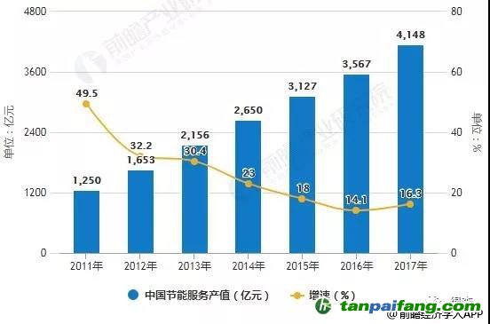 隨著中國(guó)經(jīng)濟(jì)轉(zhuǎn)型的不斷加速,原先不被大家所認(rèn)知的節(jié)能環(huán)保逐漸成為大家關(guān)注的焦點(diǎn),國(guó)家也已將節(jié)能列為中長(zhǎng)期國(guó)民經(jīng)濟(jì)和社會(huì)發(fā)展規(guī)劃的重要內(nèi)容, 據(jù)前瞻產(chǎn)業(yè)研究院發(fā)布的《中國(guó)節(jié)能服務(wù)行業(yè)市場(chǎng)前瞻與投資戰(zhàn)略規(guī)劃分析報(bào)告》統(tǒng)計(jì)數(shù)據(jù)顯示,截止到2017年中國(guó)節(jié)能服務(wù)產(chǎn)業(yè)產(chǎn)值達(dá)4148億元,全國(guó)從事節(jié)能服務(wù)的企業(yè)6137家,行業(yè)從業(yè)人數(shù)68.5萬(wàn)人,