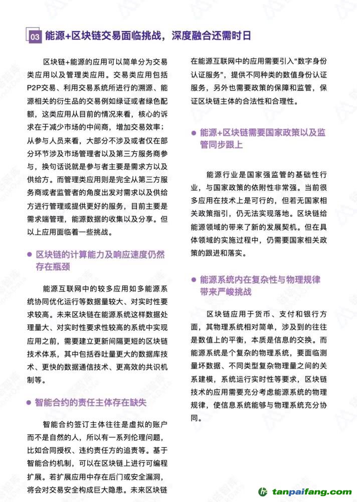 鏈塔智庫認為能源+區(qū)塊鏈目前試點應用較多,但集中在能源交易,溯源等應用,并沒有與能源進行深度融合。而阻攔與行業(yè)深度融合的因素有:能源產業(yè)鏈的數(shù)字化程度不高、區(qū)塊鏈自身的技術缺陷、未來可能的監(jiān)管政策變化以及能源產業(yè)鏈自身的復雜性。 本/文-內/容/來/自:中-國-碳-排-放-網-tan pai fang . com