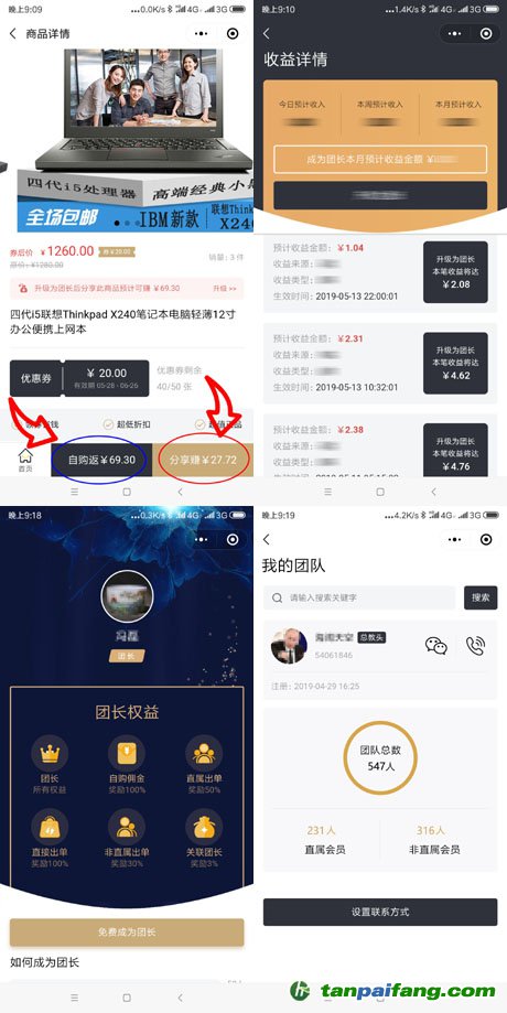 如果您覺得哪些產(chǎn)品不錯(cuò)可以將某個(gè)產(chǎn)品轉(zhuǎn)發(fā)到微信群中讓大家一塊購(gòu)買,這樣通過你轉(zhuǎn)發(fā)的小程序進(jìn)來的人將會(huì)被鎖定在您的團(tuán)隊(duì)之中,日后只要有購(gòu)買產(chǎn)生的返傭都將會(huì)打入您的賬戶,隊(duì)伍到一定規(guī)模時(shí)完全可以實(shí)現(xiàn)躺賺
