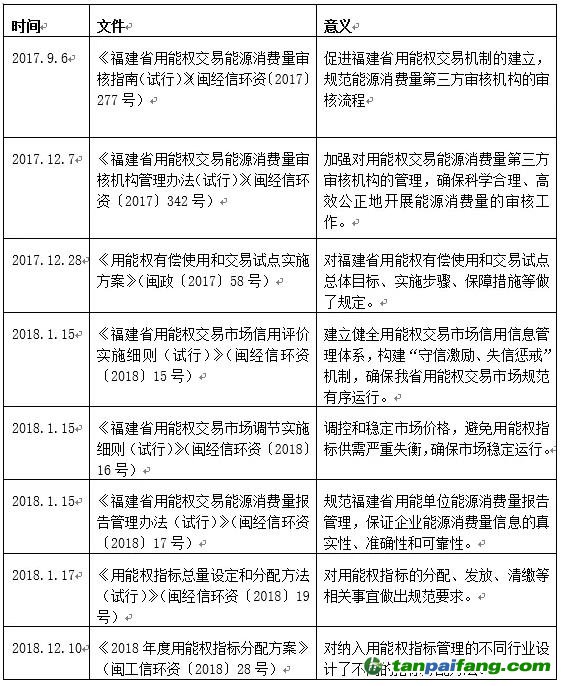 表1.福建省用能權(quán)市場(chǎng)政策支持文件