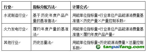 表2.福建省用能權(quán)市場(chǎng)各行業(yè)指標(biāo)分配方法