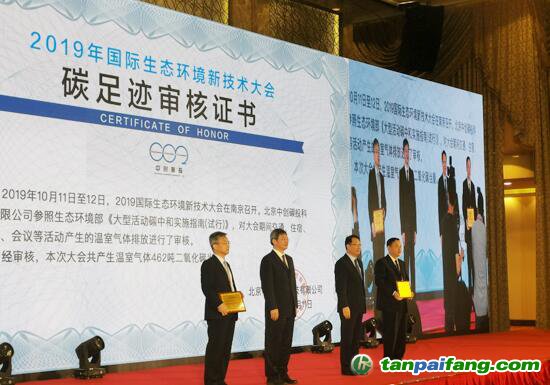 在生態(tài)環(huán)境部莊國泰副部長、江蘇省人民政府郭元強副省長等領導及嘉賓的見證下,北京中創(chuàng)碳投科技有限公司副總經(jīng)理錢國強先生宣讀了大會溫室氣體排放量并出具審核證書。江蘇省生態(tài)環(huán)境廳應對氣候與國際合作處王華處長為中創(chuàng)碳投頒發(fā)了碳中和紀念證書。 本文+內(nèi)-容-來-自;中^國_碳+排.放_交^易=網(wǎng) t a n pa ifa ng .c om