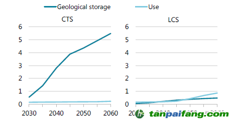 CO2的使用是CO2儲(chǔ)存的補(bǔ)充,而不是大規(guī)模減排的替代品。二氧化碳的使用預(yù)計(jì)不會(huì)實(shí)現(xiàn)與碳捕獲和儲(chǔ)存(CCS)相同的減排規(guī)模,但可以作為"所有"的一部分,并在實(shí)現(xiàn)氣候目標(biāo)方面發(fā)揮作用。在國際能源署(IEA)情景分析中,CO2儲(chǔ)存的有限部署,能源系統(tǒng)內(nèi)的CO2使用量增加(包括生產(chǎn)甲醇和合成碳?xì)浠衔锶剂希趸即鎯?chǔ)提供了二氧化碳排放量減少不到13%。CO2使用產(chǎn)生的負(fù)排放潛力也非常有限。