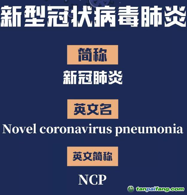 新型冠狀病毒感染的肺炎統(tǒng)一稱謂為“新型冠狀病毒肺炎”,簡(jiǎn)稱“新冠肺炎”,英文簡(jiǎn)稱為“NCP”