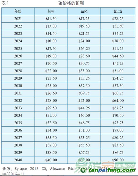 碳價(jià)格自從2011年來,CERS的價(jià)格出現(xiàn)了快速的下降,由于供過于求導(dǎo)致核證減排量的價(jià)格在12月內(nèi)降低了70%。在2012年8月初13名碳市場分析師預(yù)測到2013~2020年間CERS的平均價(jià)格為5.47歐元/噸。PointCarbon分析師預(yù)測CERS的價(jià)格為3.31歐元/噸。本文選取的2020~2030年