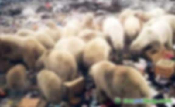 北極變暖使得捕食更加困難的北極熊紛紛侵入居民點,它們成群結(jié)隊在垃圾堆中翻找食物 (搜狐網(wǎng))