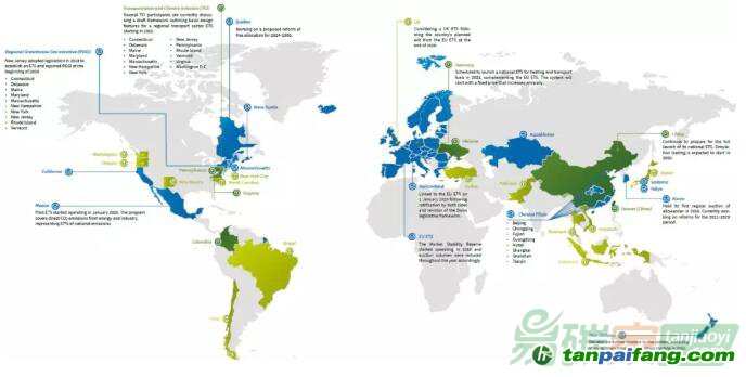 碳排放交易的主要進(jìn)展和趨勢(shì)。報(bào)告收錄了多個(gè)司法管轄區(qū)