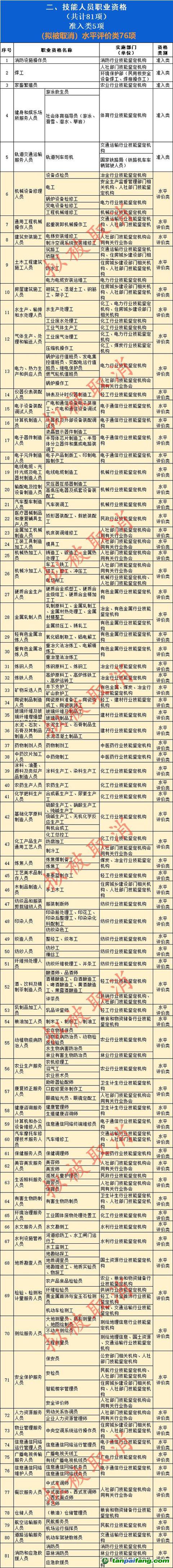國(guó)家職業(yè)資格目錄分為兩大類,“專業(yè)技術(shù)人員職業(yè)資格”和“技能人員職業(yè)資格”,擬被取消的是技能人員職業(yè)資格的水平評(píng)價(jià)類證書。