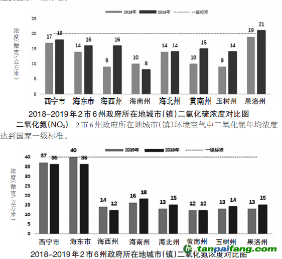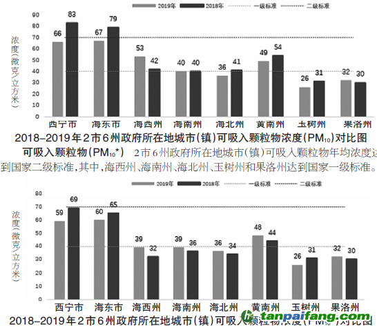 可吸入顆粒物(PM10) 2 市6州政府所在地城市(鎮(zhèn))可吸入顆粒物年均濃度達(dá)到國家二級(jí)標(biāo)準(zhǔn),其中,海南州、海北州、玉樹州和果洛州達(dá)到國家一級(jí)標(biāo)準(zhǔn)。 本%文$內(nèi)-容-來-自;中_國_碳|排 放_(tái)交-易^網(wǎng)^t an pa i fang . c om