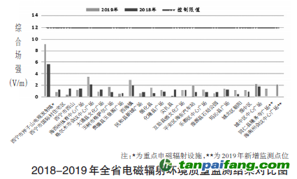 2019年,全省電磁輻射環(huán)境質(zhì)量總體良好。全省1個(gè)重點(diǎn)電磁輻射設(shè)施周圍和22個(gè)主要城市(鎮(zhèn))環(huán)境電磁輻射綜合場(chǎng)強(qiáng)測(cè)量范圍(0.14~9.30V/m),低于《電磁環(huán)境控制限值》(GB 8702-2014)規(guī)定的公眾曝露控制限值12V/m(頻率范圍為30~3000MHz)。