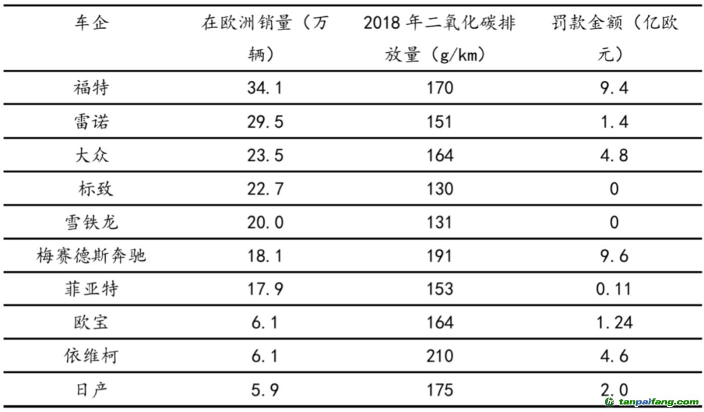 歐洲輕型商用車前十車企按2018年排放量在歐將被罰款數(shù)額