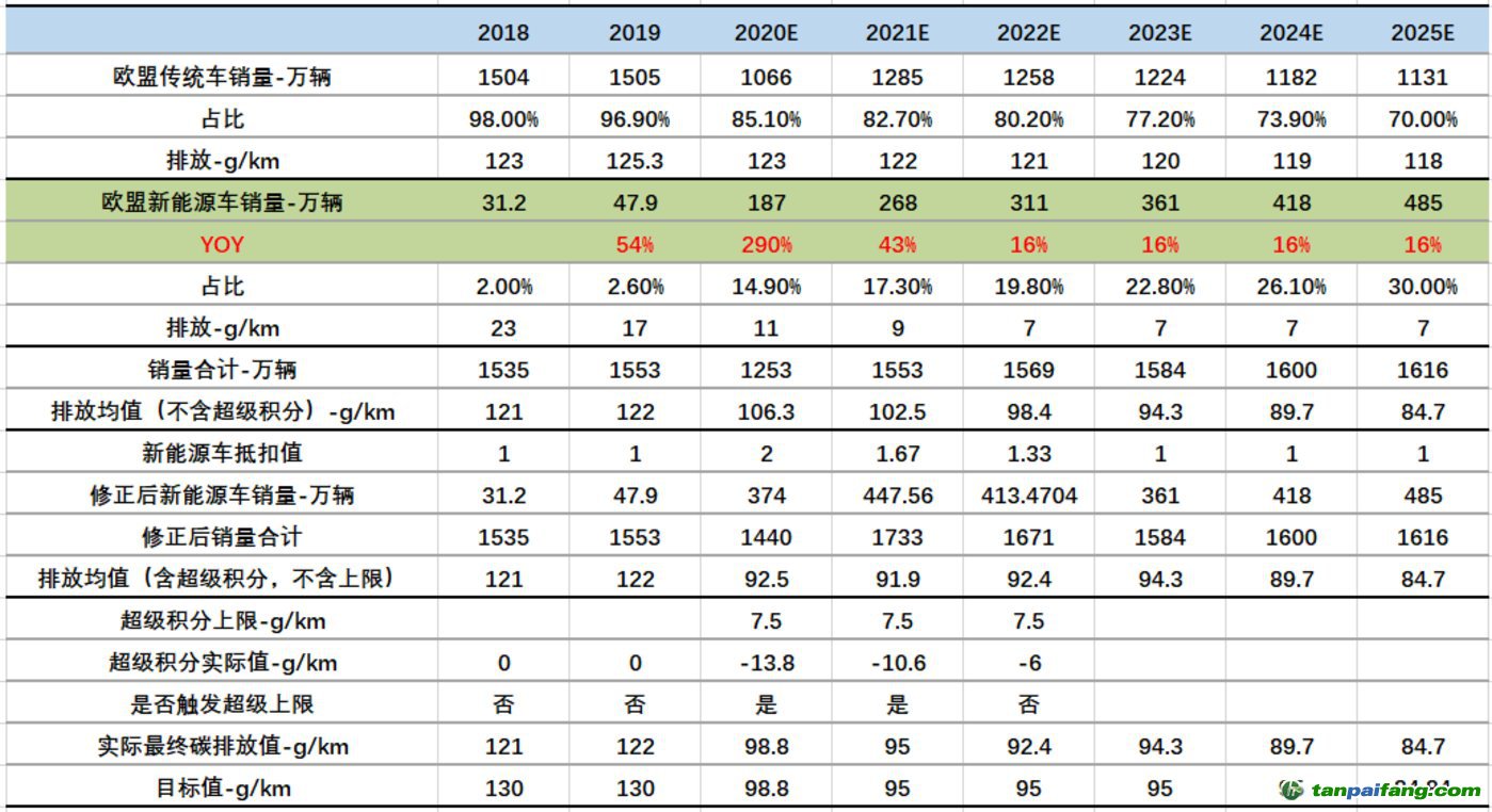 1、2020年,可能是最難的一年,當(dāng)年的新能源車銷量需達(dá)到187萬輛,增速高達(dá)290%,才能滿足最終的碳排放目標(biāo)98.8g/km,且當(dāng)年觸發(fā)了超級積分7.5 g/km的上限。 禸嫆@唻洎:狆國湠棑倣茭昜蛧 τāńpāīfāńɡ.cōm