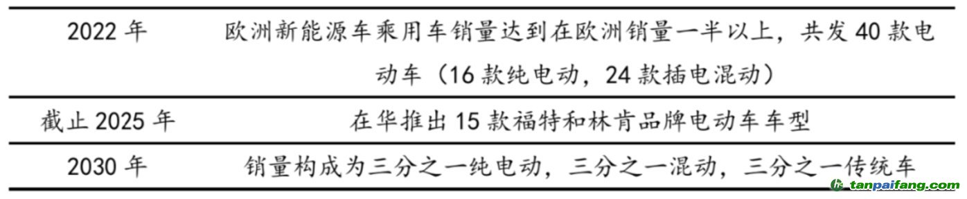 美系車(chē)企中,通用計(jì)劃在2020年前在中國(guó)至少推出10款新能源車(chē),到2026年全球新能源車(chē)年銷(xiāo)量達(dá)到100萬(wàn)輛;福特計(jì)劃在2022年在歐洲新能源乘用車(chē)銷(xiāo)量達(dá)到乘用車(chē)銷(xiāo)量一半以上,在2030年電動(dòng)化汽車(chē)占比達(dá)到三分之二以上;特斯拉計(jì)劃在2020年達(dá)到年銷(xiāo)量。 本`文@內(nèi)/容/來(lái)/自:中-國(guó)^碳-排-放^*交*易^網(wǎng)-tan pai fang. com