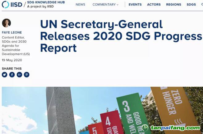 2020年5月19日,國(guó)際可持續(xù)發(fā)展研究院(IISD)發(fā)布題為《聯(lián)合國(guó)秘書(shū)長(zhǎng)發(fā)布<2020年可持續(xù)發(fā)展目標(biāo)進(jìn)展報(bào)告>》(UN Secretary-General Releases 2020 SDG Progress Report)的報(bào)道,提出聯(lián)合國(guó)秘書(shū)長(zhǎng)關(guān)于17個(gè)可持續(xù)發(fā)展目標(biāo)(SDG)的年度報(bào)告,并在2020年高級(jí)別政治