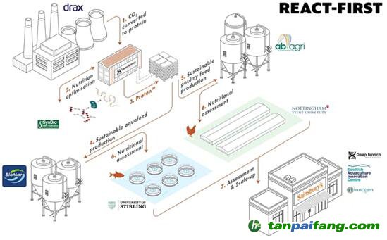 REACT-FIRST是英國(guó)第一個(gè)從生物質(zhì)能源發(fā)電項(xiàng)目中捕集二氧化碳并用于可持續(xù)蛋白質(zhì)生產(chǎn)的項(xiàng)目。項(xiàng)目由英國(guó)政府通過創(chuàng)新英國(guó)(Innovate UK)的300萬(wàn)英鎊資金形式提供財(cái)政支持,它將有助于英國(guó)實(shí)現(xiàn)“凈零排放”氣候變化承諾以及達(dá)到循環(huán)經(jīng)濟(jì)的目標(biāo)。